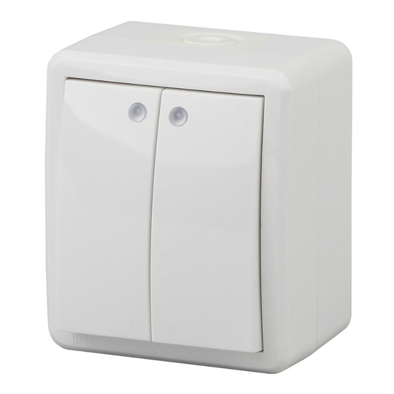Выключатель IP54 двухклавишный с подсветкой Эра Эксперт Белый 11-1405-01 (Б0020677)