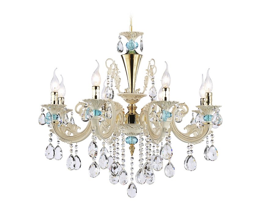 Ambrella Подвесная люстра с хрусталем TR4926/8 GD/WH/CL золото/белый/прозрачный E14*8 max 40W D740*630 TR4926