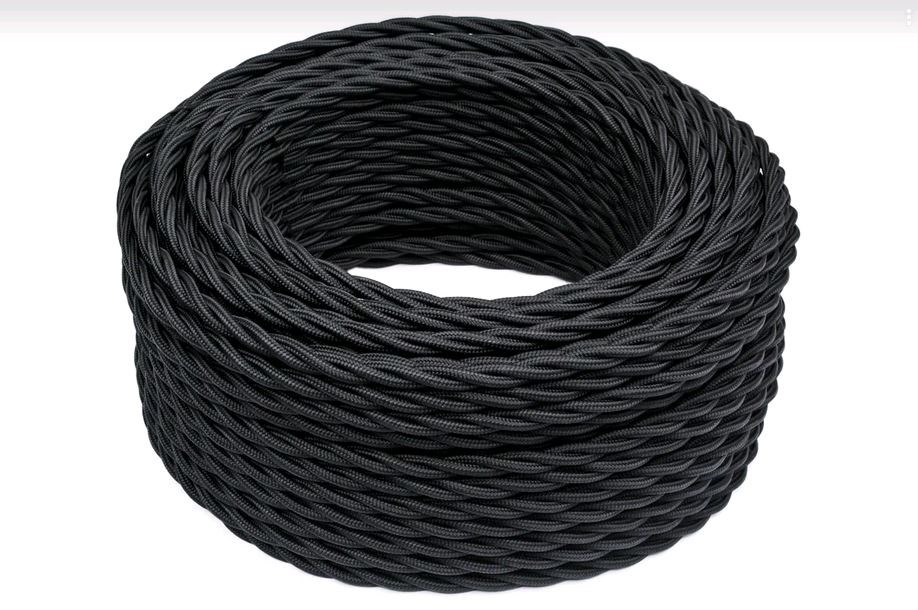 Bironi чёрный матовый витой провод 2*0,75 20м B1-422-73-20