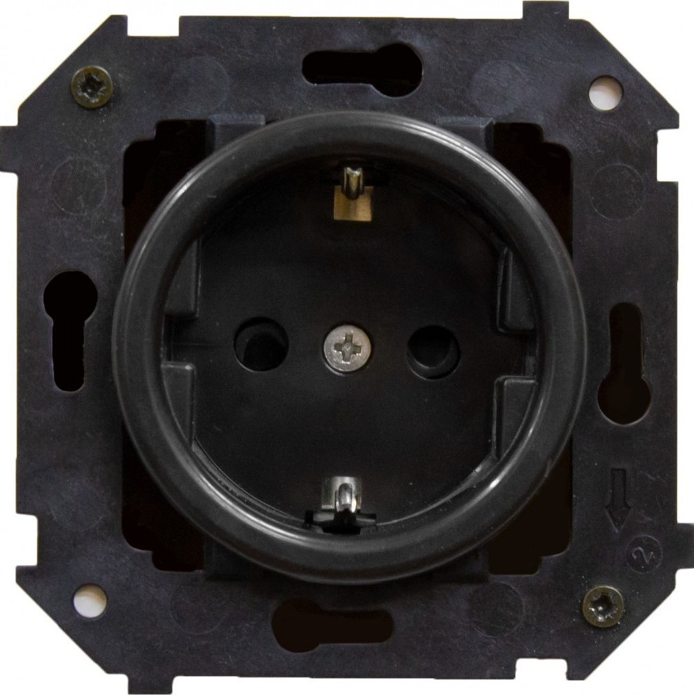 Bironi Шедель пластик чёрный розетка с заземлением (скрытый монтаж) B3-101-23