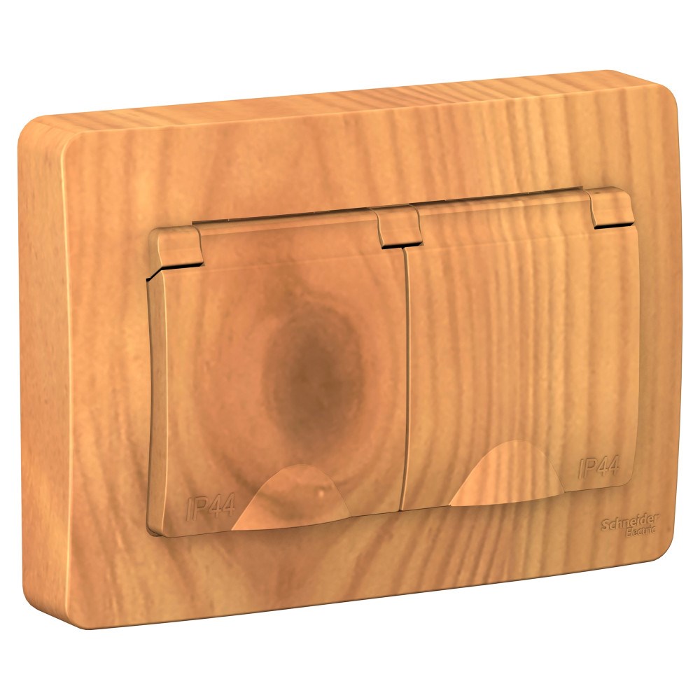 Blanca внутренняя ясень розетка 2-ая с заземлением, IP44 со шторками, 16А, 250В BLNRS441125