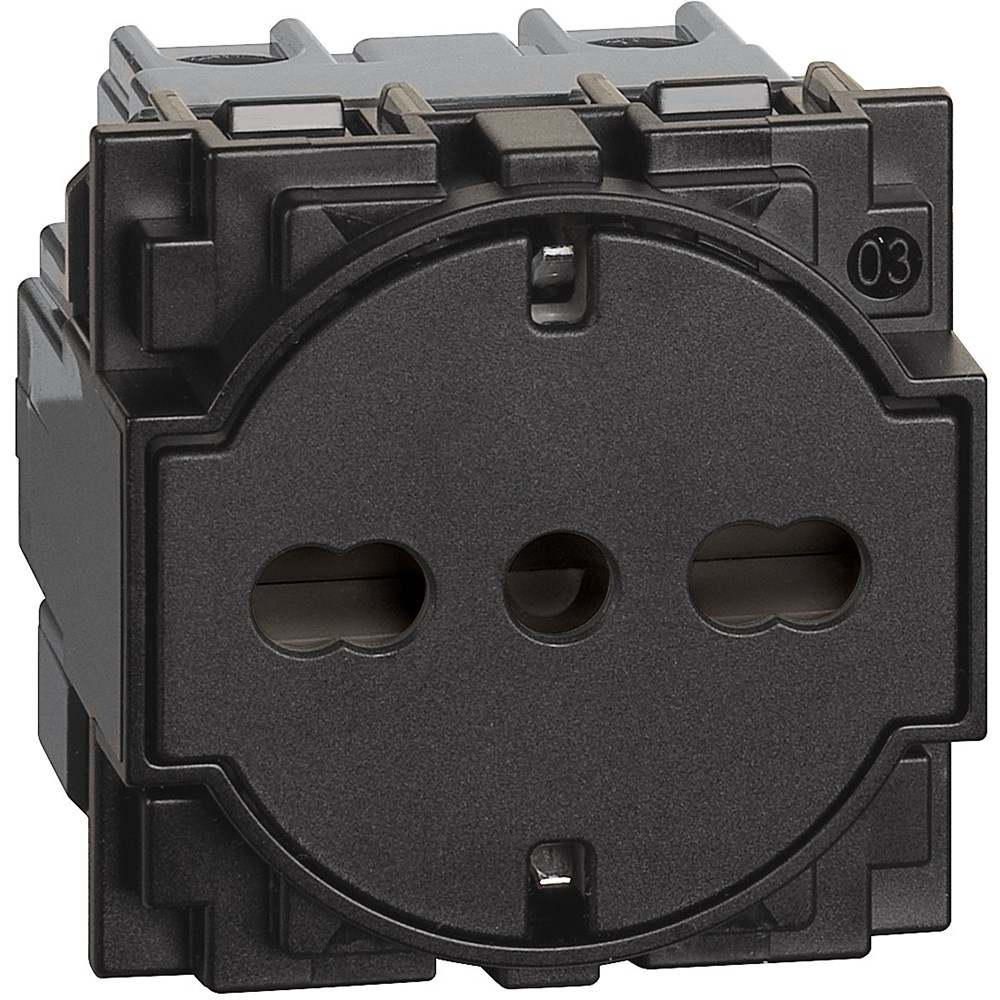 BTicino Living now чёрный розетка нем/итал стандарта с плоской лицевой панелью 10/16А 2 мод KG4140A16F