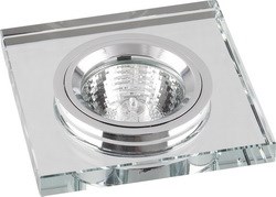 Светильник точечный литой неповоротный со стеклом, зеркальный, 50Вт, G5.3, 90х90мм, высота 45мм, вырезное отверстие 65мм, IP20, 12В/220В. КОМТЕХ