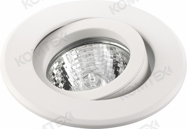 Светильник точечный алюминиевый поворотный , белый матовый, максимальная мощность 50W, ГЛН/LED G5.3, диаметр 86мм, высота с лампой 58мм, вырезное отверстие 70мм, IP20, 12V. КОМТЕХ