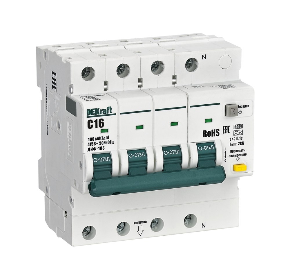 Dekraft АВДТ 3P+N 16А 100мА AC х-ка C ДИФ-103 6кА 16410DEK
