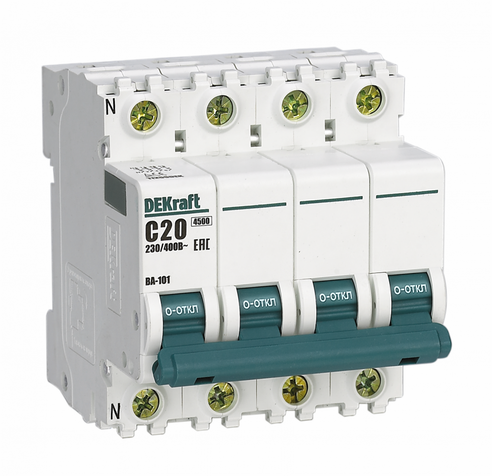 Автоматический выключатель DEKraft серии ВА-101 DEKraft; 3P+N; номинальный ток 63 А; характеристика C; отключающая способность 4,5 кА. 5 монолитных заклепок повышают прочность корпуса аппарата. Сплошная лицевая панель обеспечивает безопасность эксплуатации аппарата. Боковые каналы охлаждения повышают стабильность работы при высоких температурах окружающей среды. Есть возможность установки дополнительных аксессуаров с левой стороны устройства.