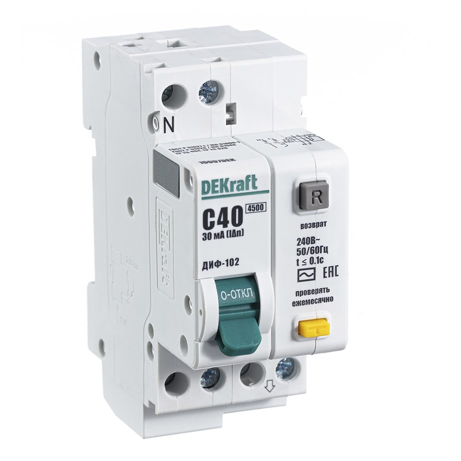 Выключатель дифференциального тока серии УЗО-03 DEKraft; 2P; номинальный ток 32 А; ном.дифф. ток 300 мА; электромеханический; тип дифференциального расцепителя - AC; на DIN-рейку. ВДТ устанавливаются в сетях напряжением до 400 В пер.тока. ВДТ применяются для защиты электроустановок от риска возникновения пожаров вследствие утечек тока. Конструкция устройств позволяет эксплуатировать их даже при низкой температуре. При сборке выключатель дифференциального тока (ВДТ) и автоматический выключатель (для защиты ВДТ) устанавливаются последовательно, при этом номинальный ток аппарата должен быть на одну ступень выше - т. е. 20А при установке последовательно с автоматом на 16А, 32А при установке с автоматом на 25А.