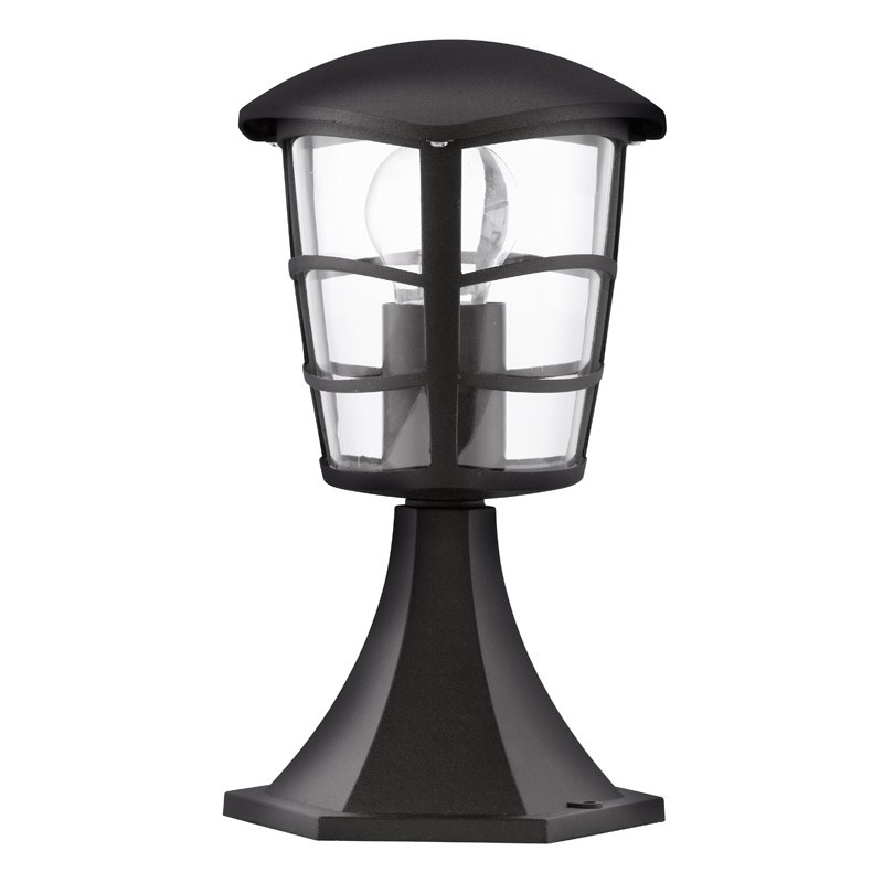 Уличный напольный светильник ALORIA – отличное решение для подсветки дорожек или входной группы современного дома в классическом стиле. Светильник выполнен в стиле лофт. Его основание черного цвета выполнено из литого алюминия и надежно защищает плафон от механического воздействия. Прозрачный пластик, используемый для плафона, визуально оставляет источник освещения на виду, но при этом надежно изолирует его от пыли и влаги. Светильник рассчитан на один источник освещения мощностью 60W(E27), для поддержания стилистики рекомендовано использовать лампу в ретро-стиле. Класс влагозащиты IP44 позволяет размещать светильник на улице и использовать его для уличного освещения. Размеры: длина основания 170 мм, диаметр основания 170 мм, ширина 170 мм, длина 170 мм, высота 300 мм.