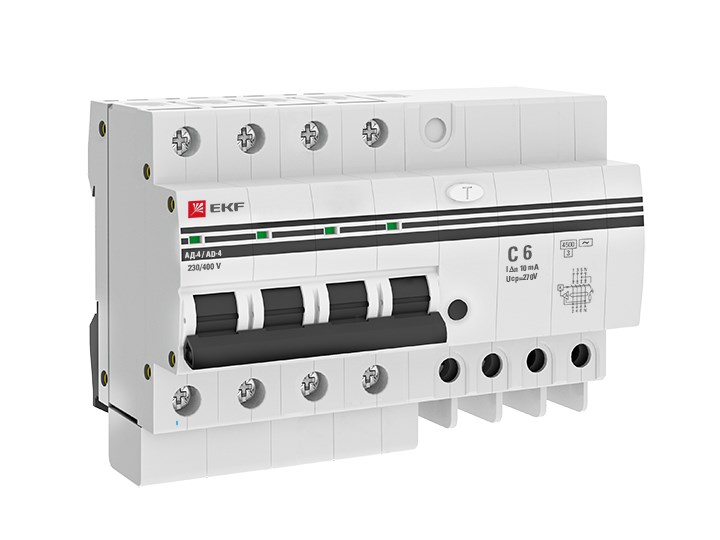 Дифференциальный автоматический выключатель АД-2(4) (S) EKF PROxima представляет собой аппарат, сочетающий функции автоматического выключателя с устройством защитного отключения. При обнаружении автоматическим выключателем в защищаемом участке сети тока утечки (повреждения) на землю или сверхтока (тока перегрузки или короткого замыкания) происходит срабатывание устройства, приводящее к отключению защищаемой сети. Особое отличие дифференциальных автоматов EKF – в наличии встроенного блока защиты от перенапряжения. АД-2 и АД-4 EKF PROxima выпускаются в стандартном и селективном (АД-2S, АД-4S) исполнениях.