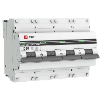 EKF PROxima ВА 47-100M Автоматический выключатель (D) 4P 80А 10kA с электромагнитным расцепителем mcb47100m-4-80D-pro