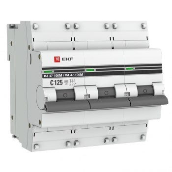 EKF PROxima ВА 47-100M Автоматический выключатель (С) 3P 125А 10kA с электромагнитным расцепителем mcb47100m-3-125C-pro