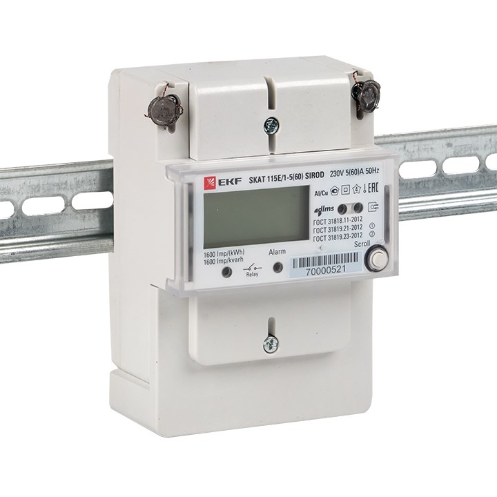 EKF Счетчик электрической энергии однофазный многотарифный SKAT 115E/1-5(60) SIROD (встроенное реле) 2 тарифа МСК+1 11502R-2-1