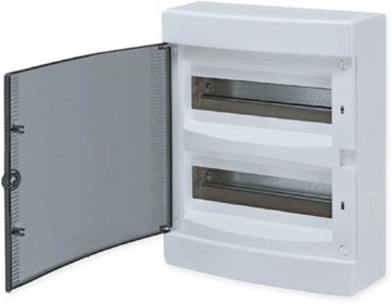 Корпуса пластиковые серии «Unix IP40» предназначены для сборки силовых распределительных и слаботочных щитов. На DIN-рейки устанавливается модульное оборудование. На монтажные платы - антенные разветвители, Wi-Fi роутеры, патч-панели и иное слаботочное оборудование. Щиты устанавливаются на поверхность стены. Ассортимент корпусов с din-рейками представлен размерами вместимостью до 72 модулей, по 12 или 18 модулей в ряду, с белой глухой или прозрачной тонированной дверью, с DIN-рейками или перфлорированными монтажными платами. Особенностью корпусов является плоское основание, упрощающее сборку и подключения внутри, лицевая панель Корпуса изготовлены из качественного глянцевого ABS-пластика, имеют минималистичный дизайн и впишутся в большинство интерьеров.