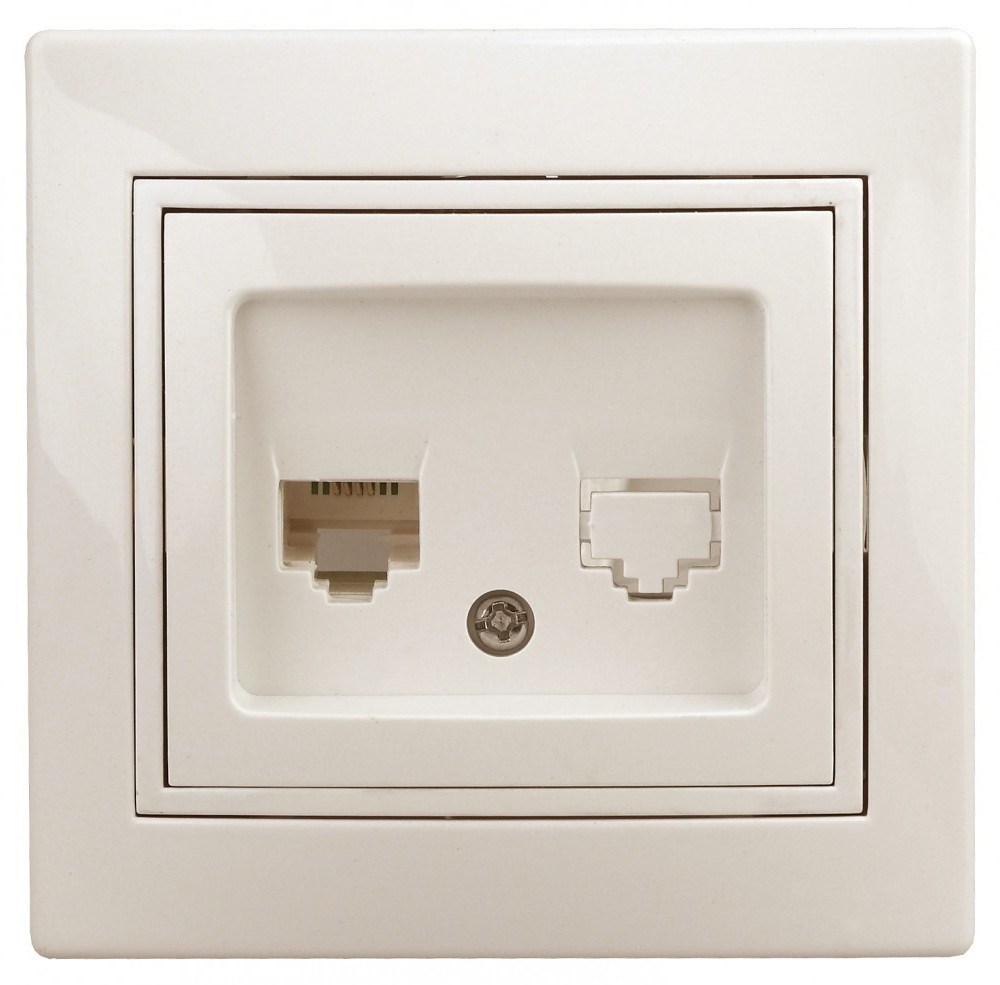 Розетка RJ45 серии Intro Plano скрытой установки цвет слоновая кость1-303-02. Номинальные характеристики . Розетка выполнена из термопласта, укомплектована одноместной рамкой. Для установки 2-х и более устройств в несколько подрозетников в ряд дополнительно используются многоместные рамки: 2-х постовая - 1-502-хх, 3-х постовая 1-503-хх, 4-х постовая - 1-504-хх (где хх - цветовой код: 01 - белый, 02 - слоновая кость, 03 - алюминий, 04 - шампань, 05 - антрацит, 10 - венге, 11 - сосна).