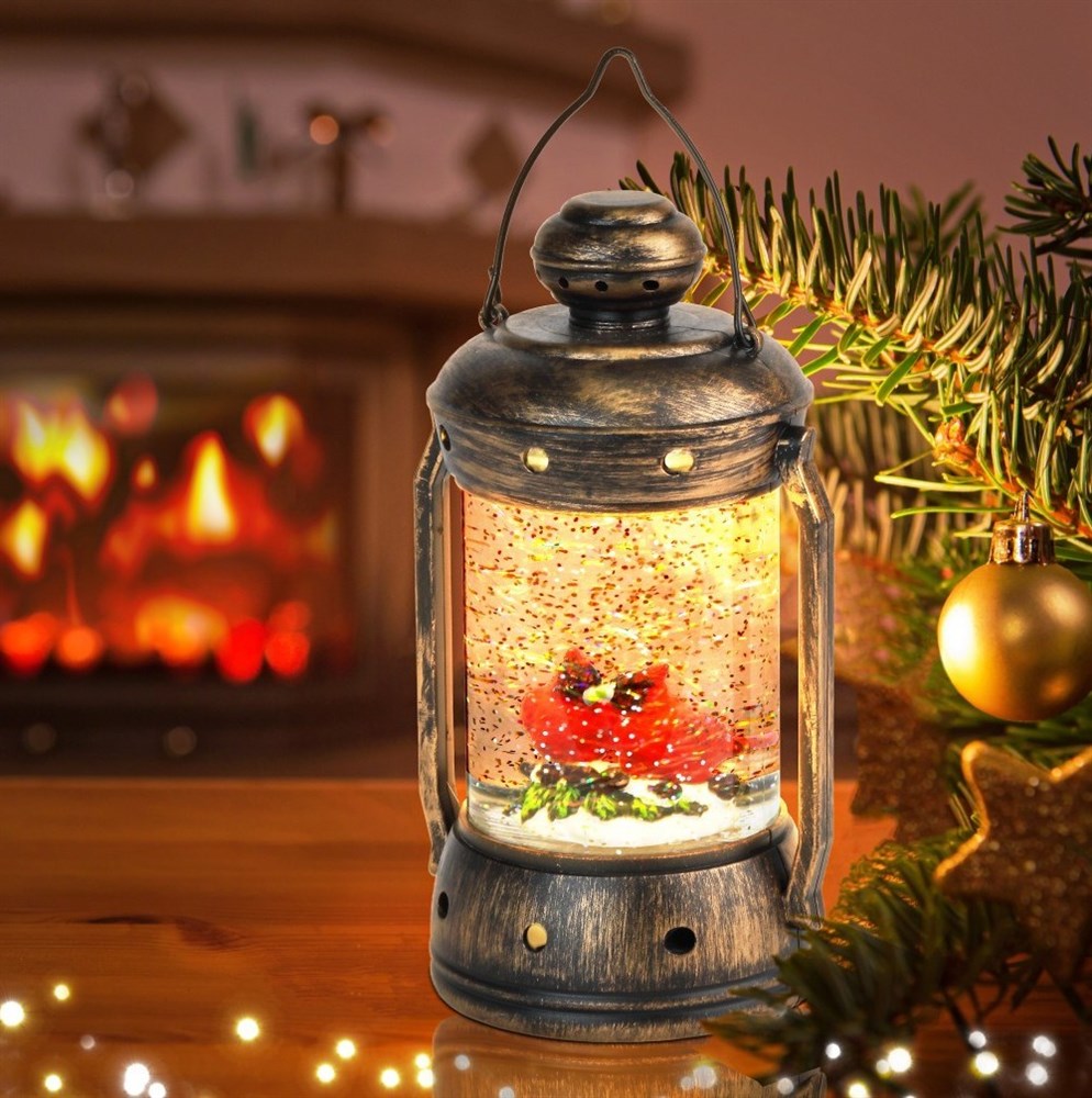 Новогодний светодиодный светильник ЭРА ENGDS-12 "Красный кардинал" высотой 18 см (арт. Б0051944) создаст у Вас дома праздничную атмосферу. Светильник-фонарик выполнен из ПВХ и окрашен под медь, внутри стекла расположены блестки, создающие эффект падающего снега. Внутри фонаря находятся фигурки двух красных кардиналов, они подсвечиваются 1 светодиодной лампочкой сверху. Декоративный светильник работает от 3 батареек АА, степень защиты IP20 (рекомендуется использовать в помещениях), автоматическое отключение через 6 часов. Он станет прекрасным украшением кухни, гостиной, а еще его можно использовать в спальне как ночник. Настольный винтажный фонарь - это необычный подарок на Новый год или Рождество, который понравится взрослым и детям. Новогодний декор для дома всегда поднимает настроение.
