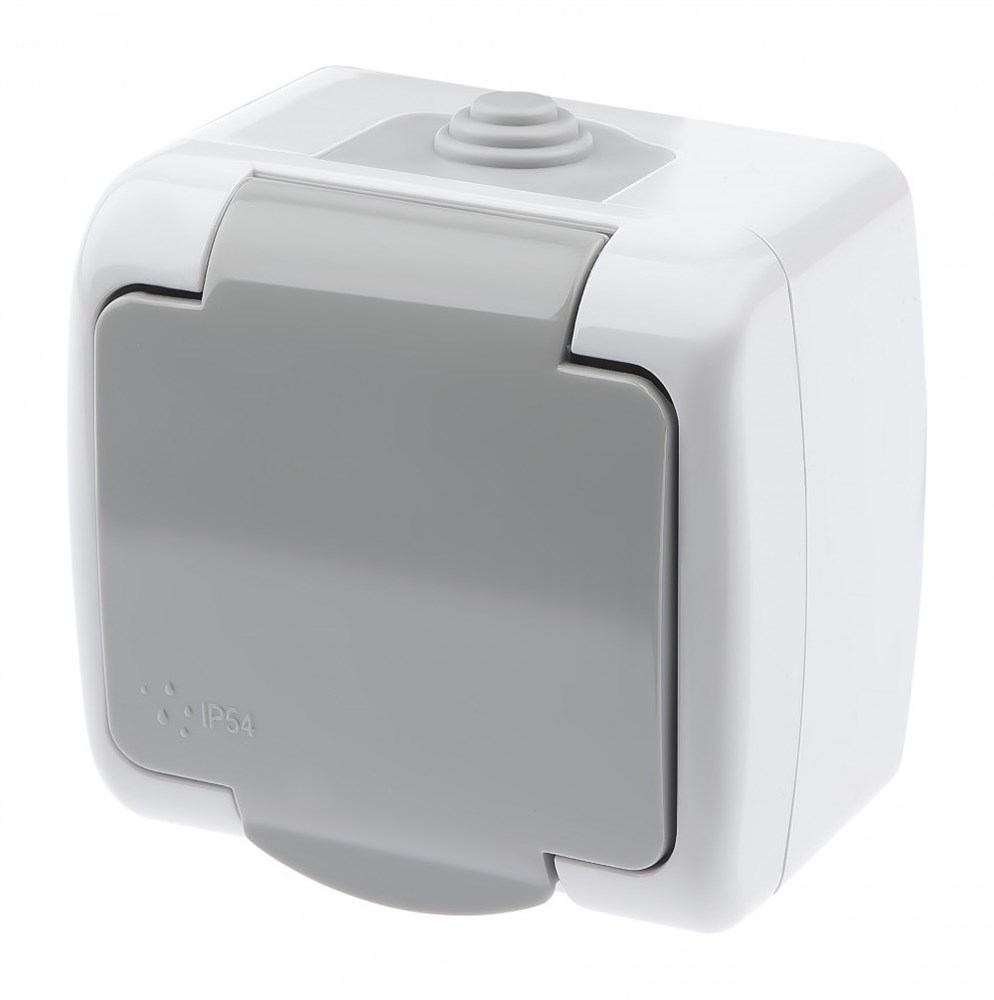 Розетка 2P+E Schuko, 16А-250В, IP54, ОУ, Atlantic, серый