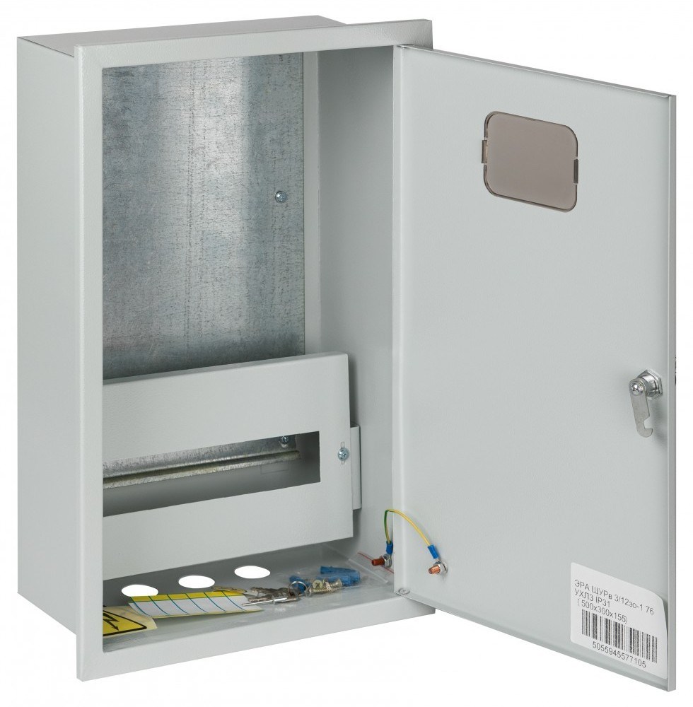 Щит учетно-распределительный ЭРА ЩУРв 3/12зо-1 76 УХЛ3 IP31 (500х300х155) предназначен для установки приборов учета и распределения электрической энергии, модульных устройств, а также защиты сетей напряжением до 400 В от токов перегрузки и короткого замыкания. Обеспечивает защиту потребителей от поражения электрическим током. Успешно применяется для электромонтажа в жилых, административных, торговых, спортивных и производственных сооружениях. Щит изготовлен из качественной российской стали, имеет жесткий сварной корпус и высококачественное эпоксидно-полиэфирное порошковое наружное покрытие. Установка счетчиков электрической энергии производится на металлическую монтажную панель. Для визуализации показаний счетчика в дверке предусмотрено смотровое окно. Щит изготовлен из высококачественной стали 08 пс ГОСТ 1050-88 методом сварки. Высококачественное порошковое покрытие, цвет RAL 7035. Высокая технологичность и простота монтажа. Возможность установки разных типов электрических счетчиков. Возможность опломбировки. В комплектацию поставки входит замок с двумя ключами. Гарантия от сквозной коррозии 15 лет. Гарантийный срок эксплуатации 5 лет.
