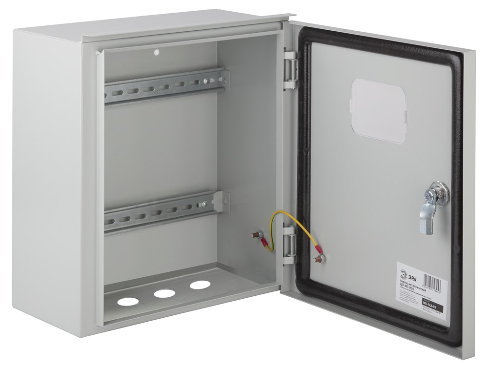 Щит учета ЭРА ЩУ-МП с окном и кронштейном IP55 (370х325х180) предназначен для организации ввода электроэнергии, установки в нем аппаратов учета электрической энергии, модульных устройств, а также защиты сетей напряжением до 400 В от токов перегрузки и короткого замыкания. Обеспечивает защиту потребителей от поражения электрическим током. Устанавливается на границе энергоучета. Степень защиты IP 54/IP 55 обеспечивает щиту учета широкий спектр применения: жилые помещения, загородные дома и дачные домовладения, административные, хозяйственные сооружения, гаражи. Щит учета изготовлен из качественной российской стали, имеет жесткий сварной корпус и высококачественное эпоксидно-полиэфирное порошковое наружное покрытие. На контур двери нанесен уплотнительный состав из вспененного полиуретана. Щит представляет собой металлический сварной корпус с одной/двумя дверцами, оборудованными петлей для опломбировки. Монтажная панель (DIN рейка) позволяет установить однофазный (трехфазный) счетчик электрической энергии. Для визуализации показаний счетчика в дверке предусмотрено смотровое окно.Широкий ассортимент моделей в серии ЭРА и ЭРА SIMPLE. Щит изготовлен из высококачественной стали 08 пс ГОСТ 1050-88 методом сварки. Высококачественное порошковое покрытие, цвет RAL 7035. Высокая технологичность и простота монтажа. Возможность установки разных типов электрических счетчиков. Возможность опломбировки. Высокий уровень электробезопасности. Универсальная конструкция предотвращает попадание пыли, влаги, наледи внутрь корпуса. Для исполнения IP54/IP55 - высококачественный двухкомпонентный полиуретановый уплотнитель. В комплектацию поставки входит замок с двумя ключами. Гарантия от сквозной коррозии 15 лет. Гарантийный срок эксплуатации 3 года.