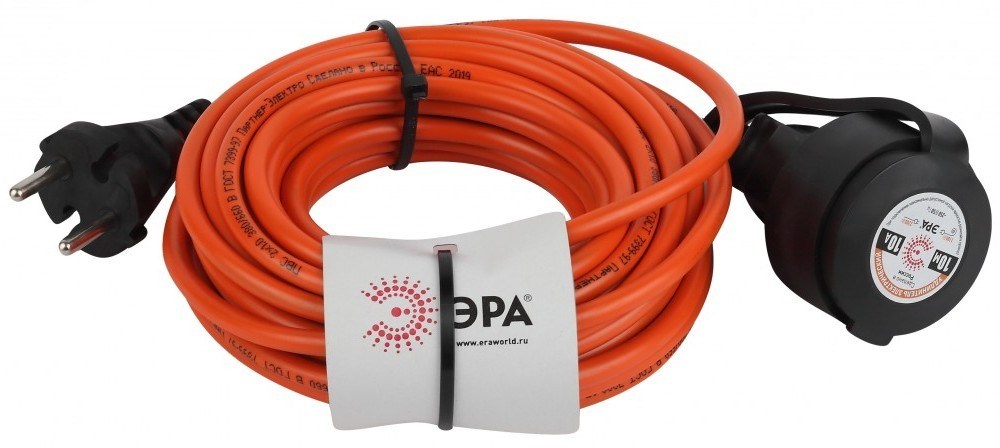 Удлинитель силовой в бухте ЭРА UPx-1-2x1-10m без заземления, ПВС 2х1м2, 1 розетка, 10м, степень защиты IP20. Мощность 10А/2200Вт. Используется для работы на строительных площадках или дачных участках. Удобен при работе с приборами находящимися удаленно от стационарной розетки. Например, газонокосилки, электрические, пилы, триммеры или электродрели. Провод в удлинителях Эра сделан из 100% меди, что делает его абсолютно пожаробезопасным.