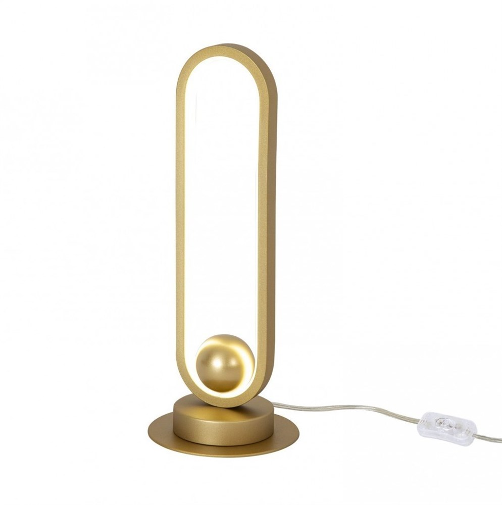настольный светильник, металлический каркас матового золотого цвета, глянцевое золотое покрытие декоративного шара