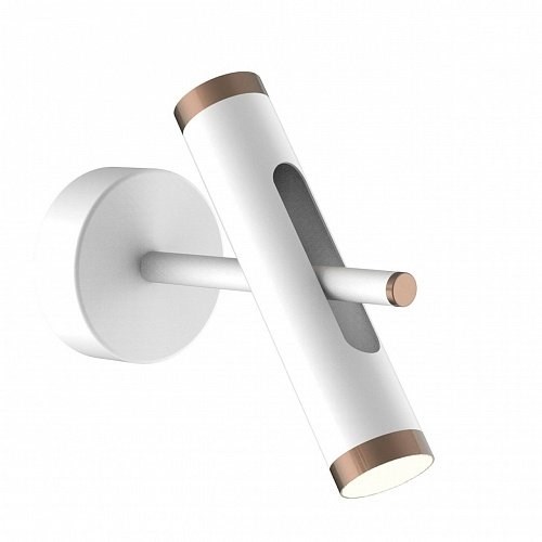 настенный светильник; Крепление-планка; Размер светильника-D240*W120*H240; Лампы-2*LED*3W, 4000K, included; Цвет, отделка-металл белого матового цвета, элементы окрашены в золотисто-коричневый цвет, все плафоны поворотные, модули LED с двух сторон плафона