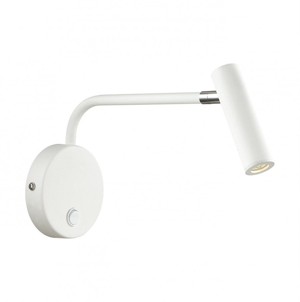 настенный светильник; Крепление-планка; Размер светильника-D120*W60*H100; Лампы-1*LED*3W, 3000K, included; Цвет, отделка-белый металл, элементы в хроме, с выключателем