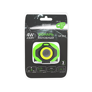 Gauss Фонарь налобный модель GFL303 4W 230lm 3xAAA LED 1/12/60 GF303