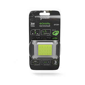 Gauss Фонарь налобный модель GFL304 3W 180lm 3xAAA LED 1/12/60 GF304
