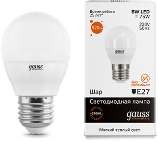 Gauss Лампа Elementary Шар 8W 520lm 3000K Е27 LED 53218