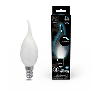 Gauss Лампа Filament Свеча на ветру 9W 610lm 4100К Е14 milky диммируемая LED 104201209-D