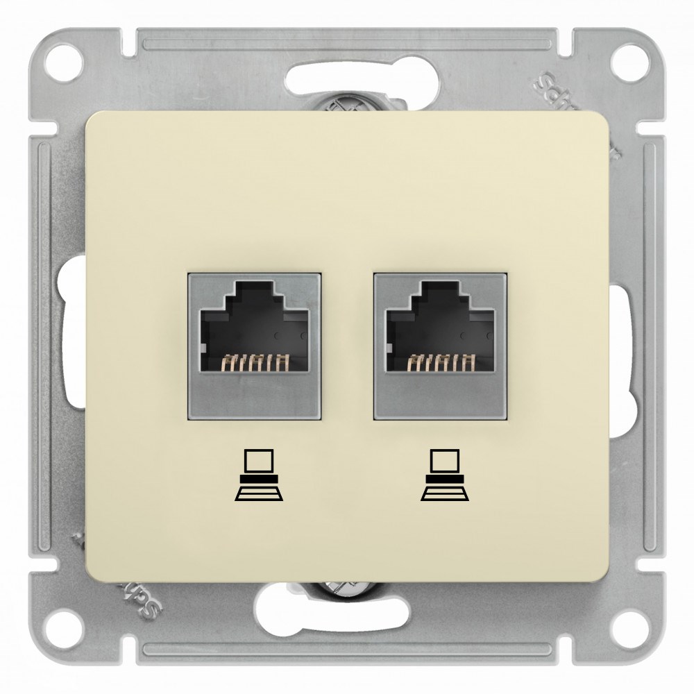 Glossa бежевый розетка 2-ая компьютерная RJ45+RJ45, кат.5E GSL000285KK