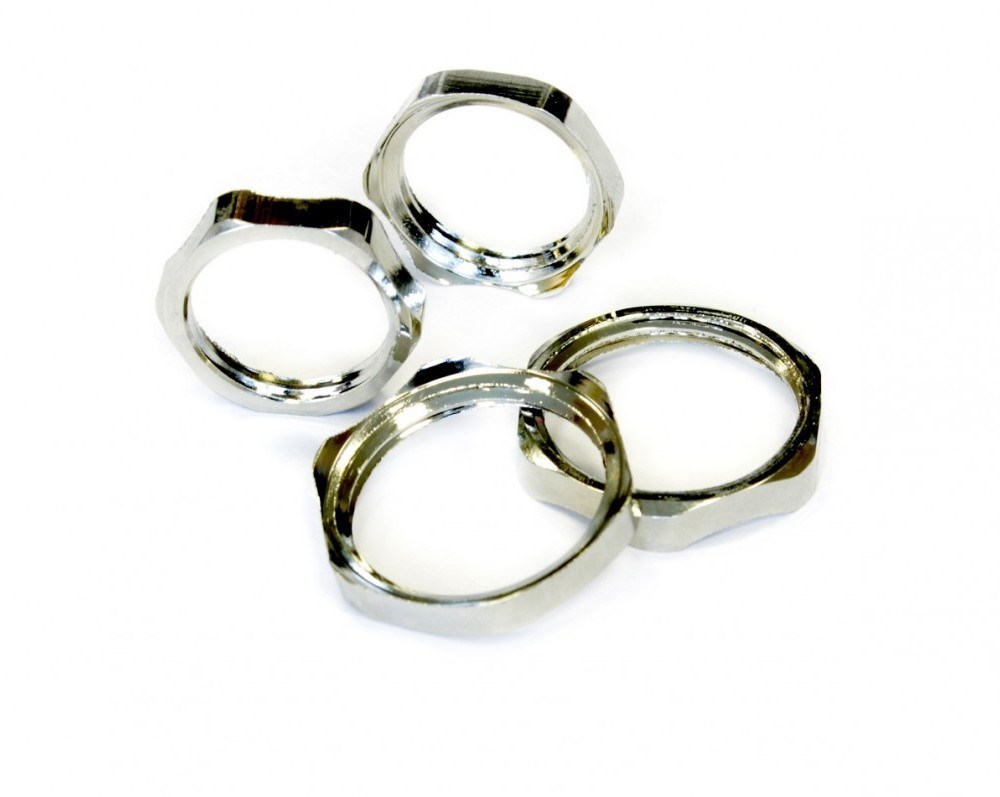 Гайки заземляющие ГЗ2 из никелированной латуни или нержавеющей стали предназначены для надёжного соединения фитингов или устройств вводимых в электротехнические оболочки (ящики, щиты управления, коробки). Гайки ГЗ2, за счёт острых зубцов создают надёжный электрический контакт между соединителем и корпусом электрооборудования. Имеют эстетичный внешний вид и стандартный размер под ключ. Изготавливаются с метрической М, трубной G и резьбой PG на выбор заказчика. Рекомендованы к использованию с фитингами типа МВН и МТК из никелированной латуни.
