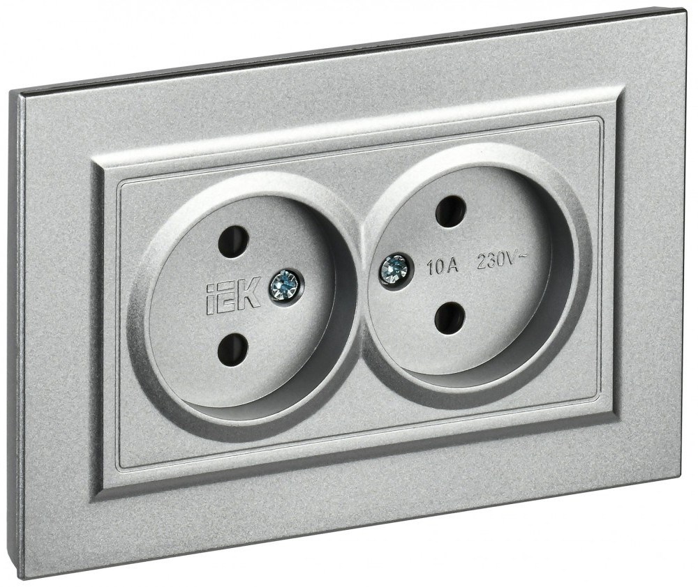 IEK Brite алюминий розетка 2-я без заземления, со шторками, 10А в сборе BR-R23-10-K47-F