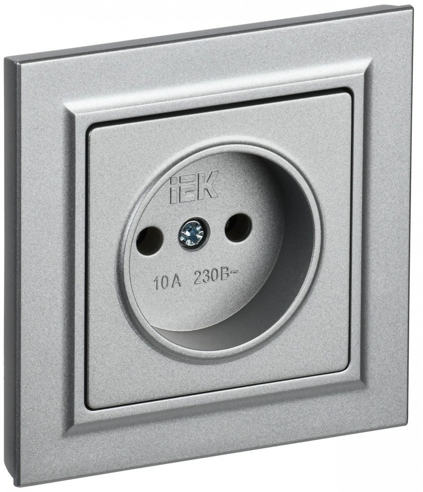 IEK Brite Base алюминий розетка без заземления, шторок, 10А в сборе BR-R10-10-K47-F