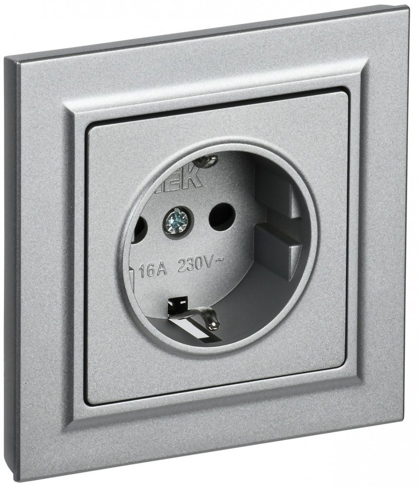 IEK Brite Base алюминий розетка с заземлением и шторками, 16А в сборе BR-R14-16-K47-F