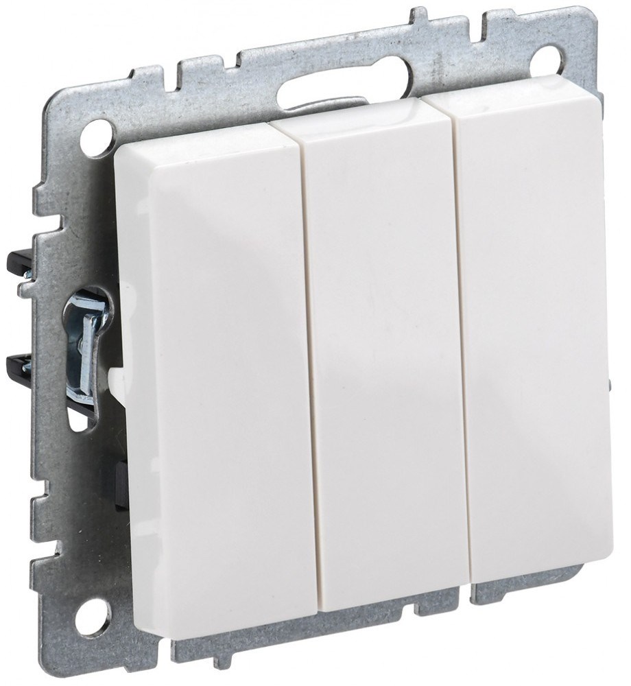 IEK Brite Base белый выключатель 3 клавишный 10А BR-V30-0-10-K01