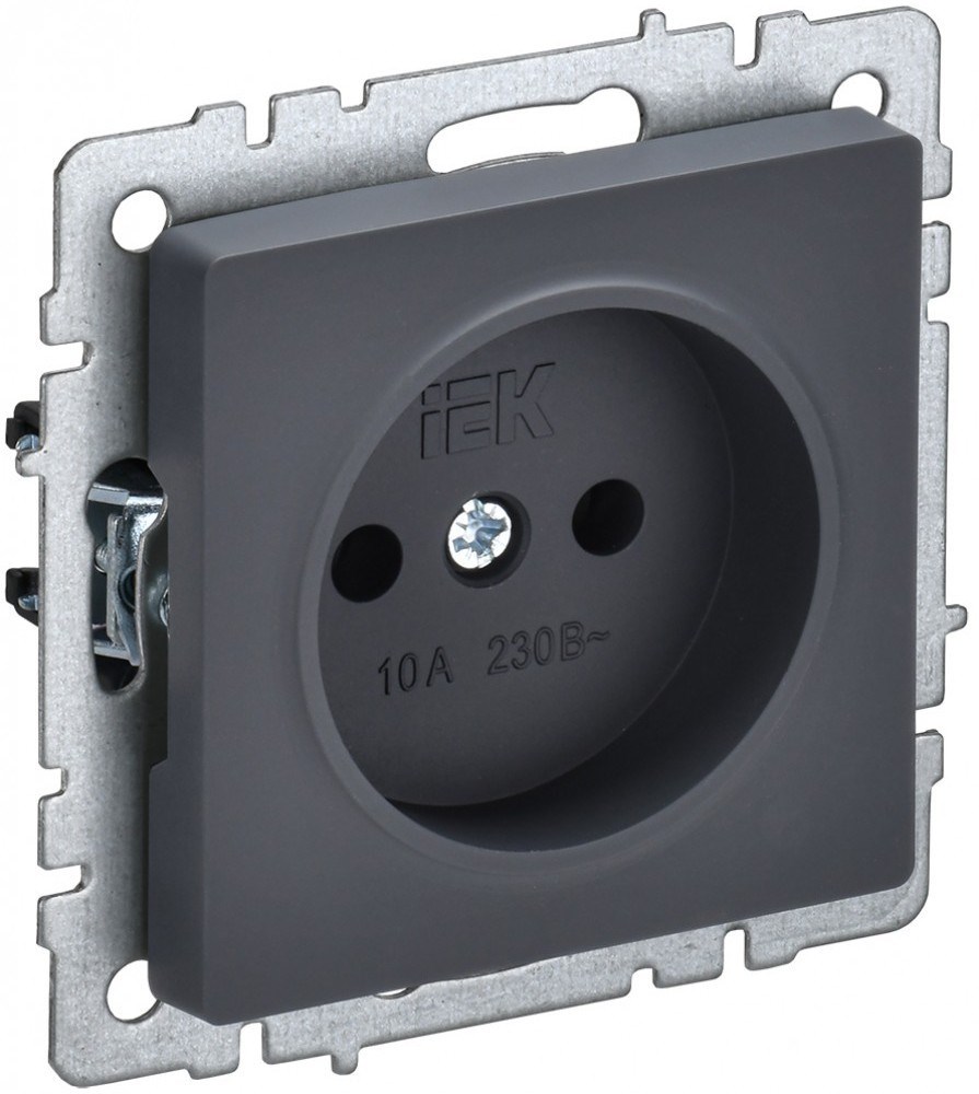 IEK Brite Base графит розетка 1-м без заземления, без защ.штор. 10А BR-R10-10-K53