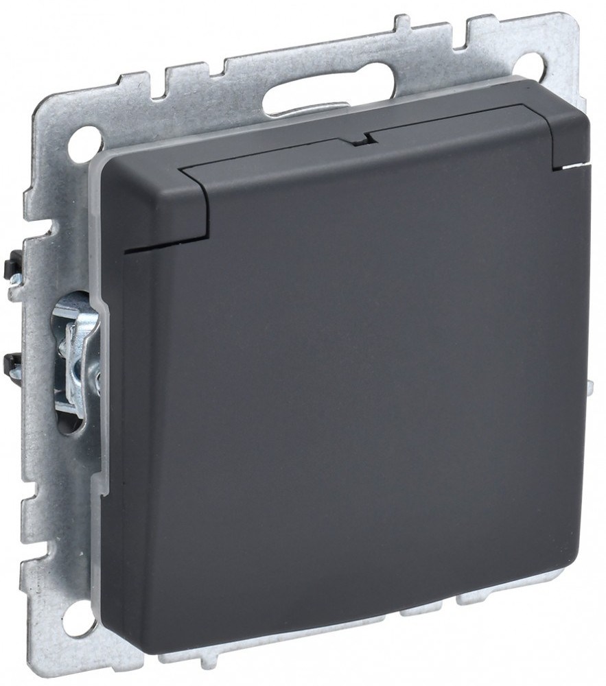 IEK Brite Base графит розетка 1-м с заземлением, с защитными шторками и крышкой 16А IP20 BR-R16-16-K53