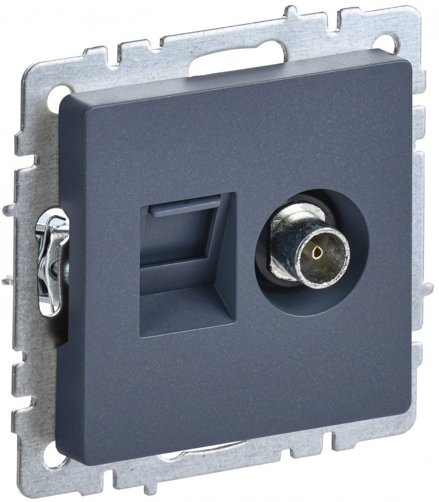 IEK Brite Base маренго розетка двойная TV+RJ45 кат.5E BR-AK20-1-K35