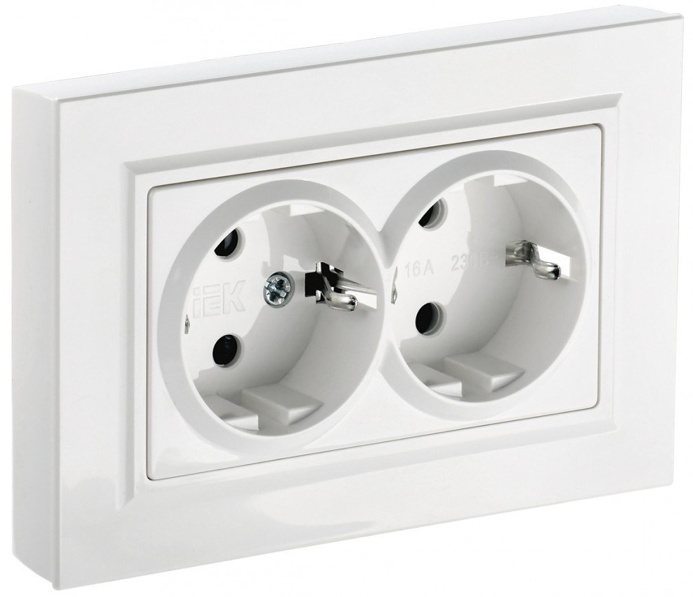IEK Brite белый розетка 2-места с заземлением, без защитных створок 16А в сборе BR-R21-16-K01-F