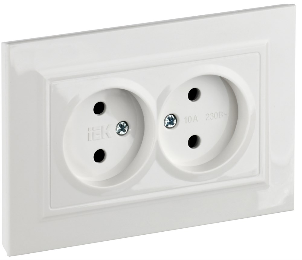 IEK Brite белый розетка 2-я без заземления, со шторками, 10А в сборе BR-R23-10-K01-F