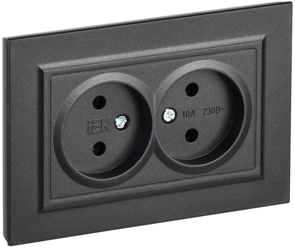 IEK Brite чёрный розетка 2-я без заземления, шторок, 10А в сборе BR-R20-10-K02-F