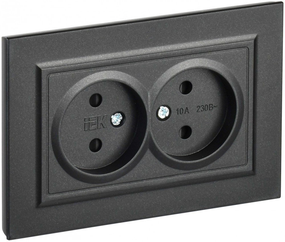 IEK Brite чёрный розетка 2-я без заземления, со шторками, 10А в сборе BR-R23-10-K02-F