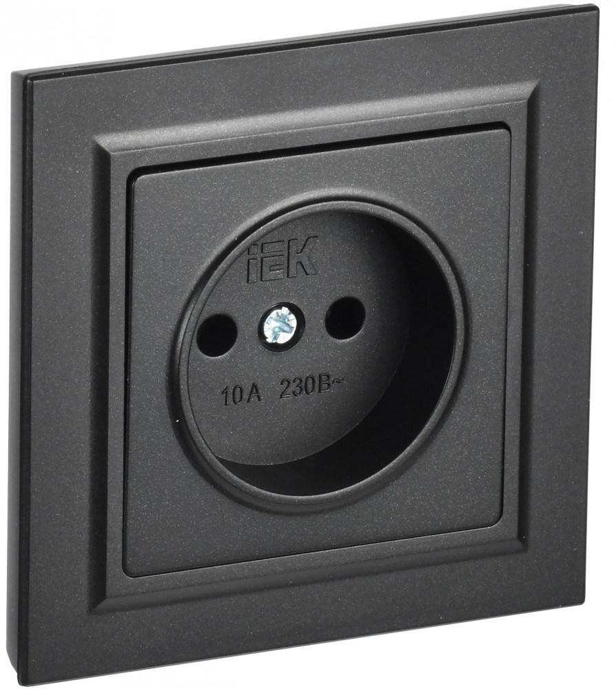 IEK Brite чёрный розетка без заземления, шторок, 10А в сборе BR-R10-10-K02-F