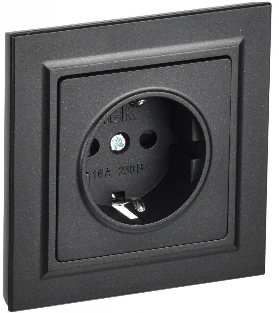 IEK Brite чёрный розетка с заземлением и шторками, 16А в сборе BR-R14-16-K02-F