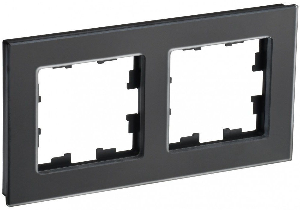 IEK Brite Decor чёрный матовый стекло рамка 2 места BR-M22-G-31-K02