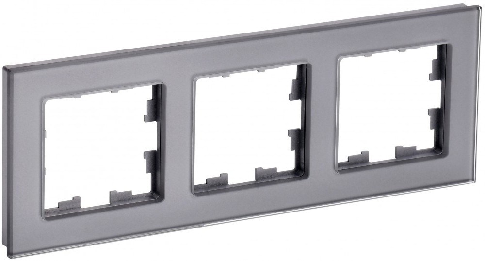 IEK Brite Decor серый глянец стекло рамка 3 места BR-M32-G-K03