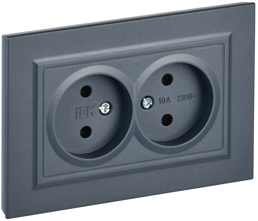 IEK Brite маренго розетка 2-я без заземления, шторок, 10А в сборе BR-R20-10-K35-F