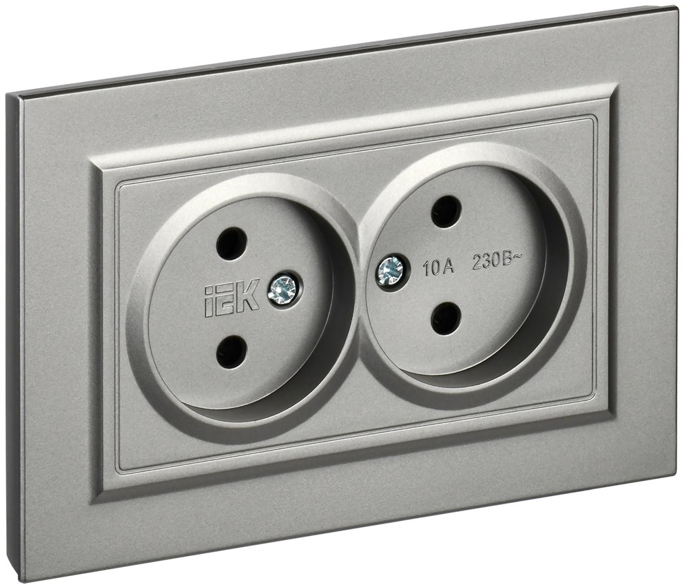 IEK Brite сталь розетка 2-я без заземления, шторок, 10А в сборе BR-R20-10-K46-F