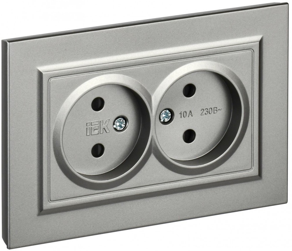 IEK Brite сталь розетка 2-я без заземления, со шторками, 10А в сборе BR-R23-10-K46-F